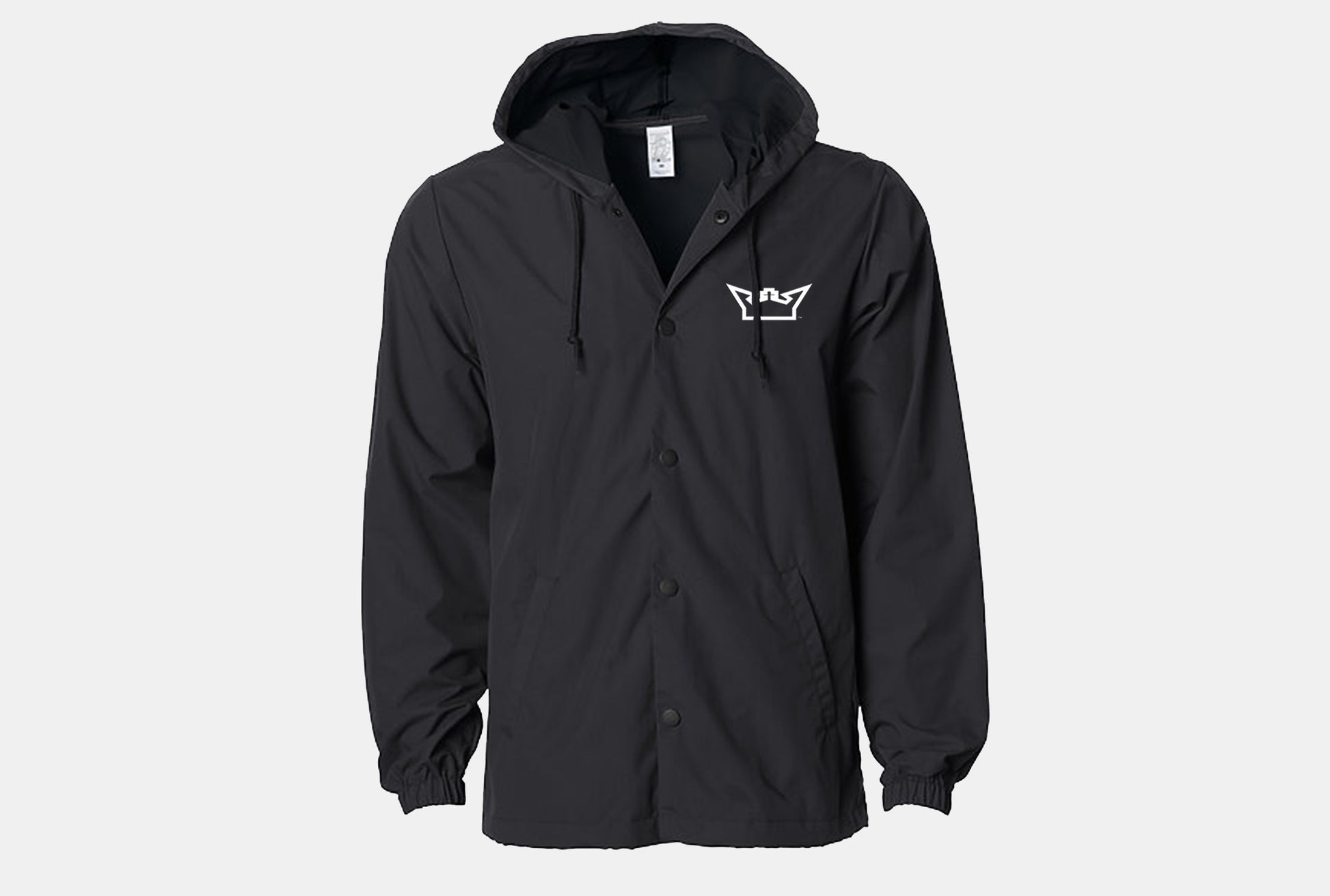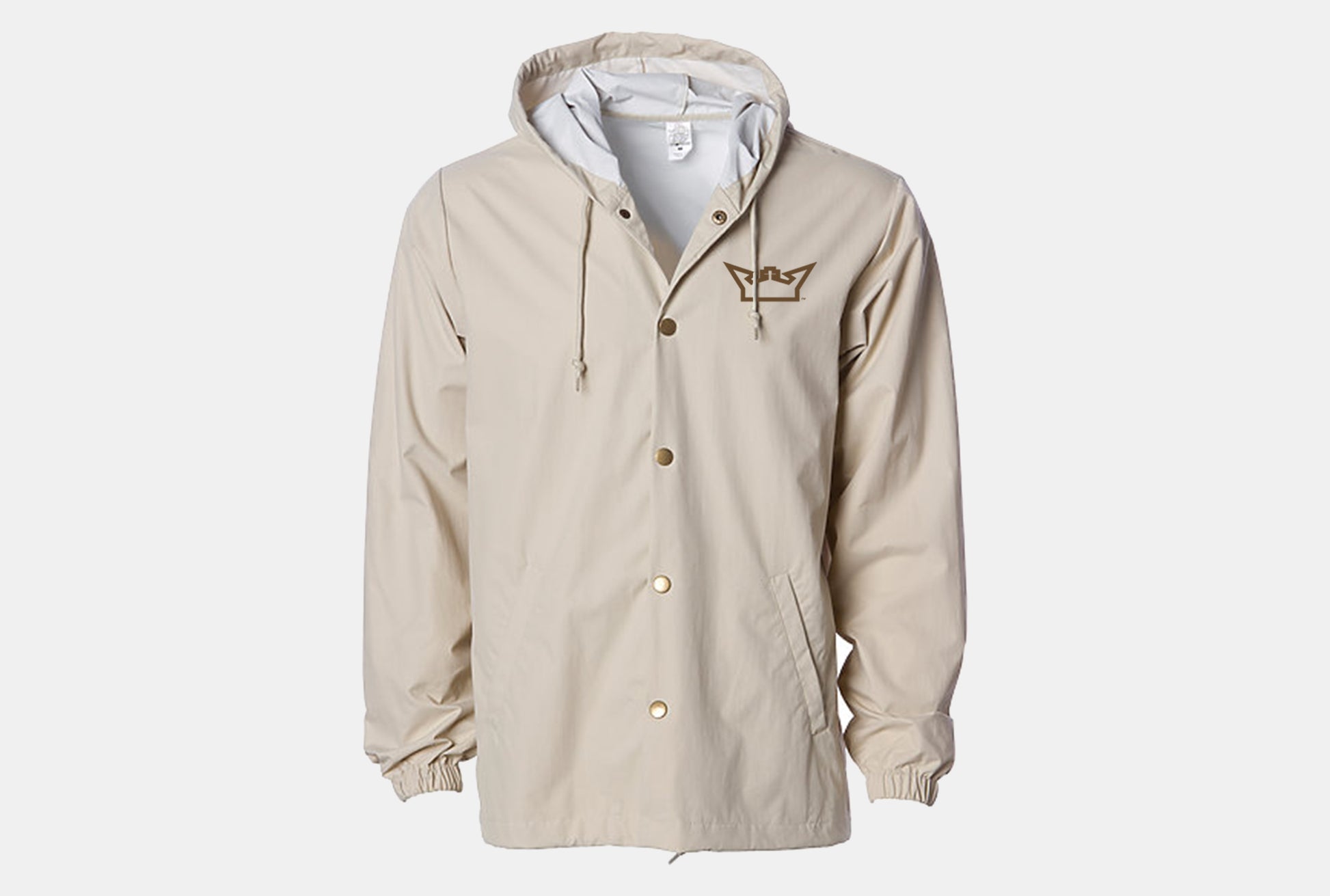 This Nylon Windbreaker Coaches Jacket is super nice! Waterproof nylon fabric with snap front closure. The Nylon exterior fabric is coated with a 100% water proof coating. comes in some stylish colors and of course we have to put our Signature logo to set it off just right! You will be representing the Kingdom for sure with this fit! 100% nylon 150gm 320 Denier with Interior PU waterproof coating Nylon Outer Shell: Waterproof Coating = Level 3 Inner PU Coating: Breath-ability/Permeability = 5,000 Water Pressure Resistance = 10,000 mm unlined hood self neck tape antique brass eyelets (black/black color = matte black metal eyelets) antique brass 6 snap front closure (black/black color = matte black metal snaps) elastic cuffs underarm grommets drawcord closure at hood and bottom opening standard fit